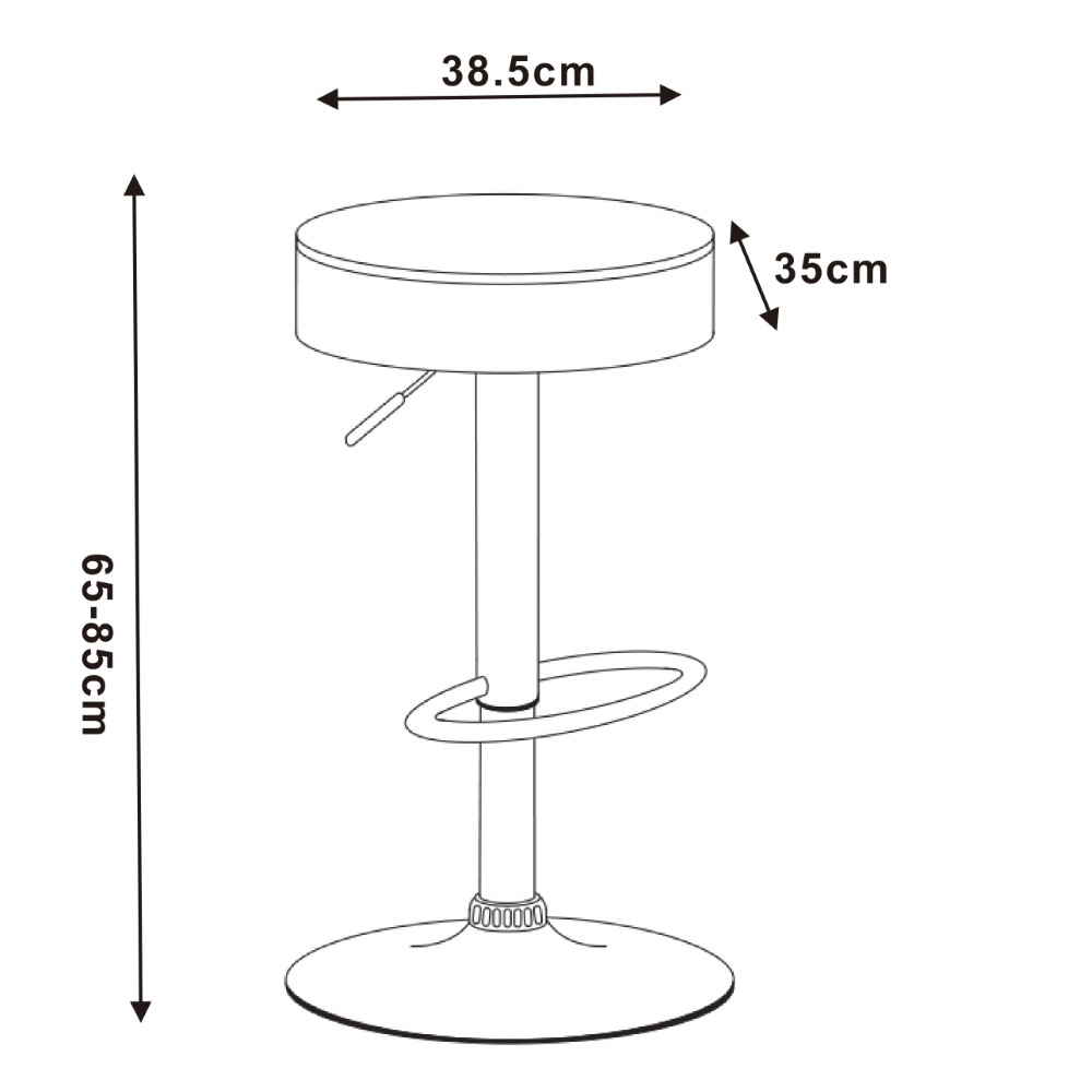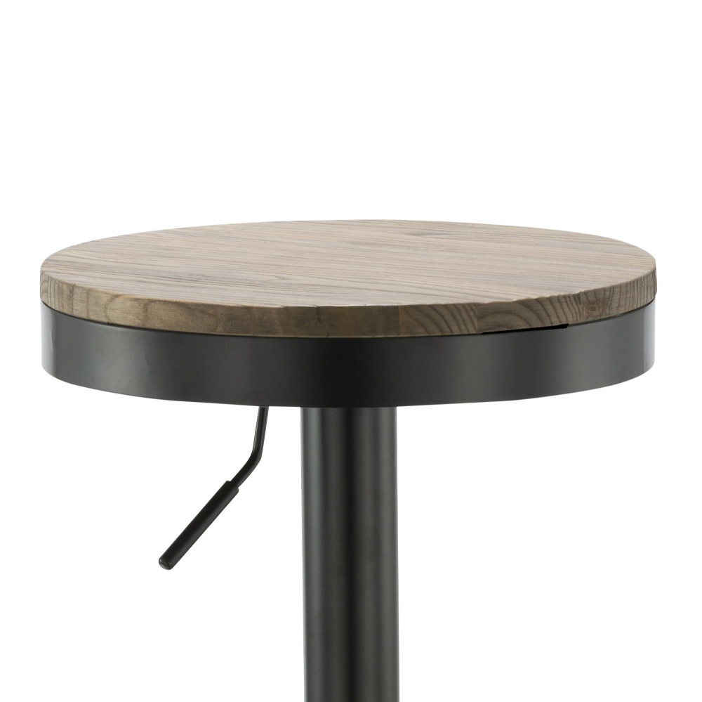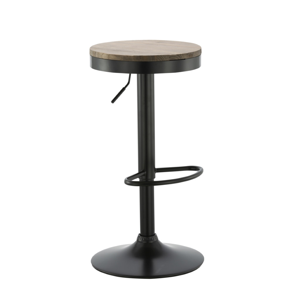 Sodoben barski stol s pridihom klasike, za katerega poskrbi sedišče iz brestovega lesa. Barski sedež je vrtljiv in nastavljiv po višini, s plinskim mehanizmom v podpornem stebričku sedeža. Podnožje stola je izdelano iz kovine, prašno lakirane v črno barvo za boljšo zaščito, in je opremljeno s naslonom za noge, ki omogoča bolj udobno sedenje. Široka talna plošča zagotavlja stabilnost tudi ko je stol povsem obremenjen. Maksimalna nosilnost barskega stola je 120 kg.