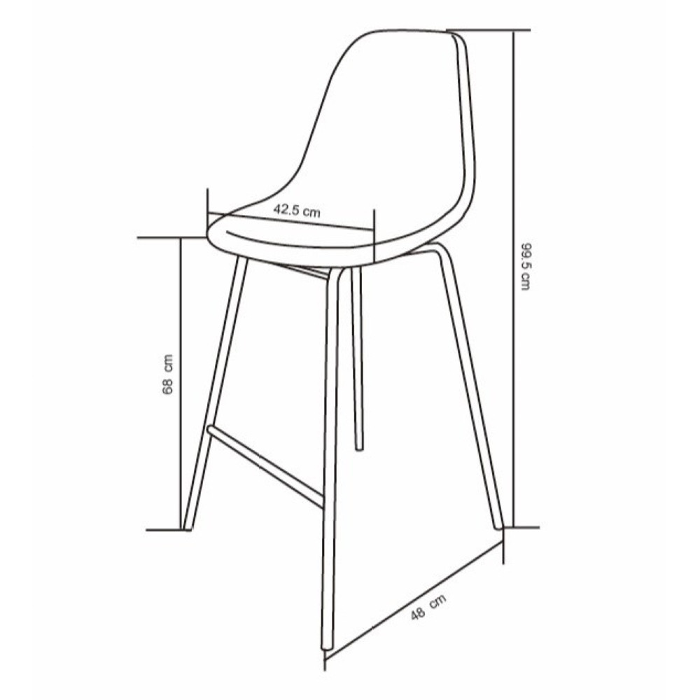 Preprost barski stol, na voljo v več barvah. Celoten stol je oblazinjen s kvalitetno tkanino, z občutkom žameta. Rahlo ukrivljena oblika sedeža in hrbtišča je prilagojena obliki telesa, in pomaga razbremeniti telo ob dolgotrajnem sedenju. Podnožje stola je izdelano iz kovinskih cevi in ima na sprednji strani naslon za noge. Za boljšo zaščito pred okoljem je podnožje tudi prašno lakirano. Maksimalna nosilnost stola je 120 kg.