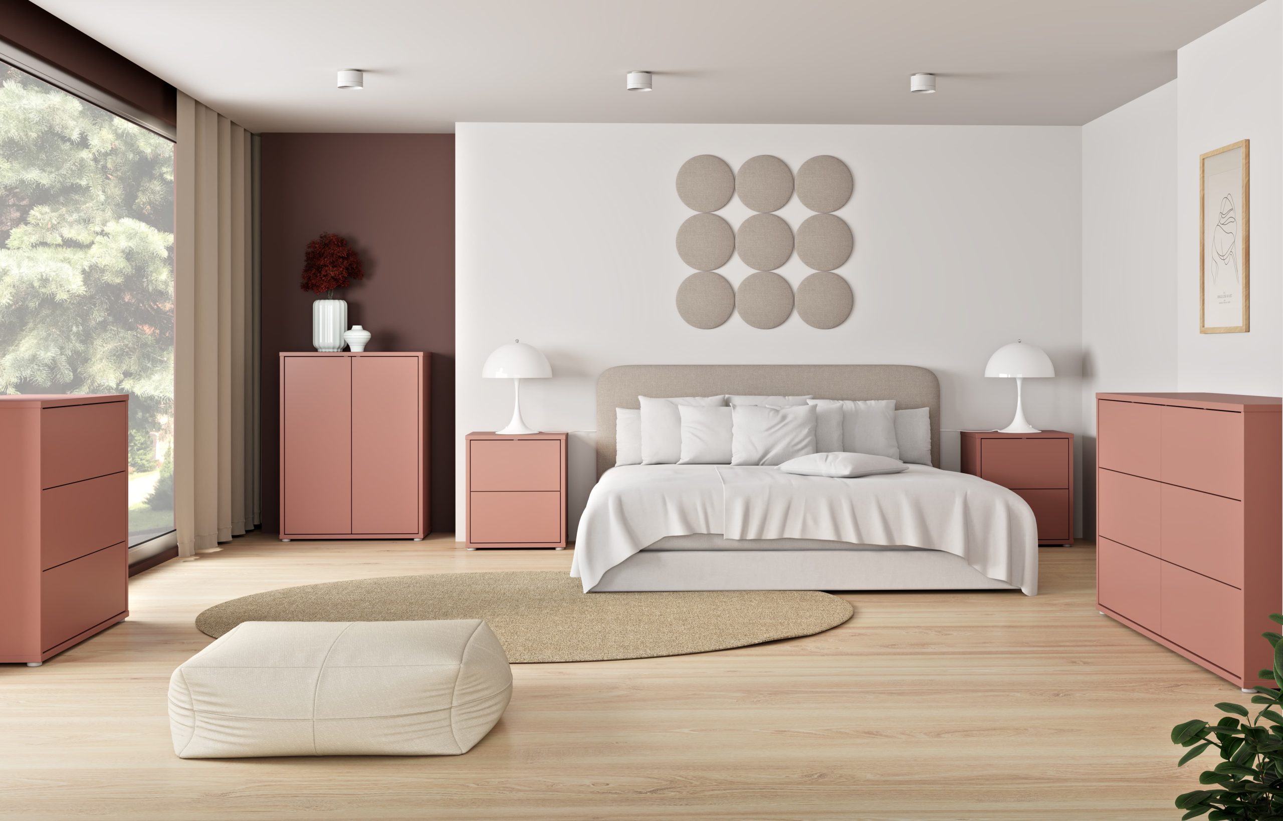 Ne glede na to, ali se uporablja kot samostojen kos ali v kombinaciji z drugim pohištvom, ta komoda uravnoteži uporabnost z vizualno preprostostjo, njena terakota barva pa se zlahka zlije tako s sodobnimi kot eklektičnimi notranjostmi.