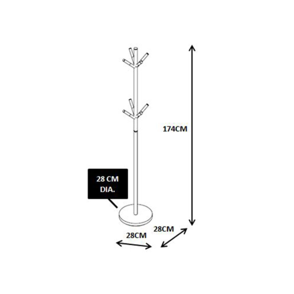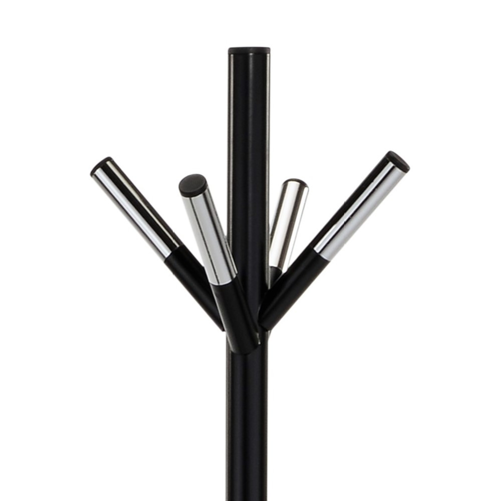 Modern obešalnik v kombinaciji črne in krom barve. Ogrodje je narejeno iz jekla in obdelano s prašnim lakiranjem. Kljukice za obešanje so kromirane. Maksimalna nosilnost obešalnika je 12 kg.