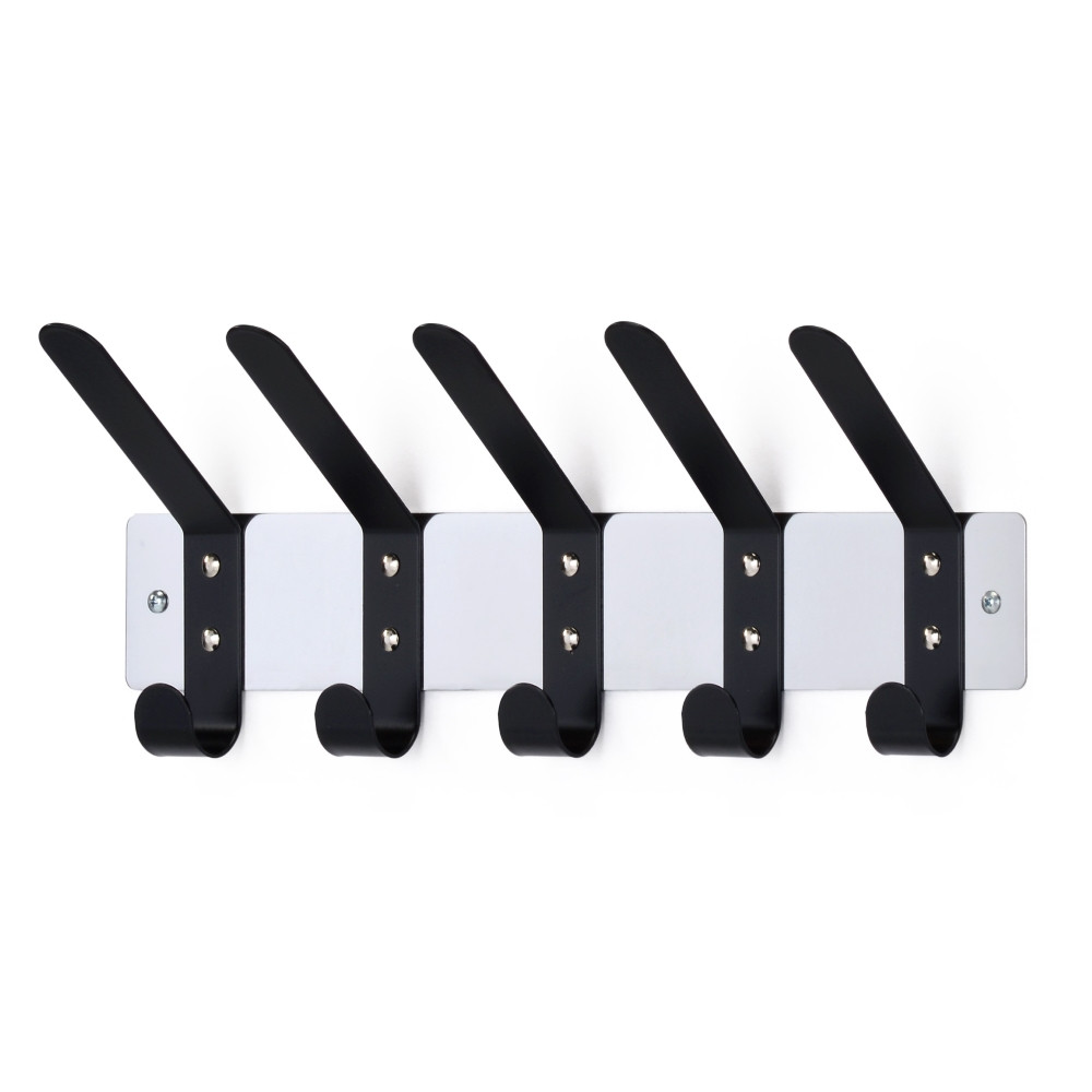Modern obešalnik v kombinaciji črne in srebrne barve, ki pride že sestavljen.