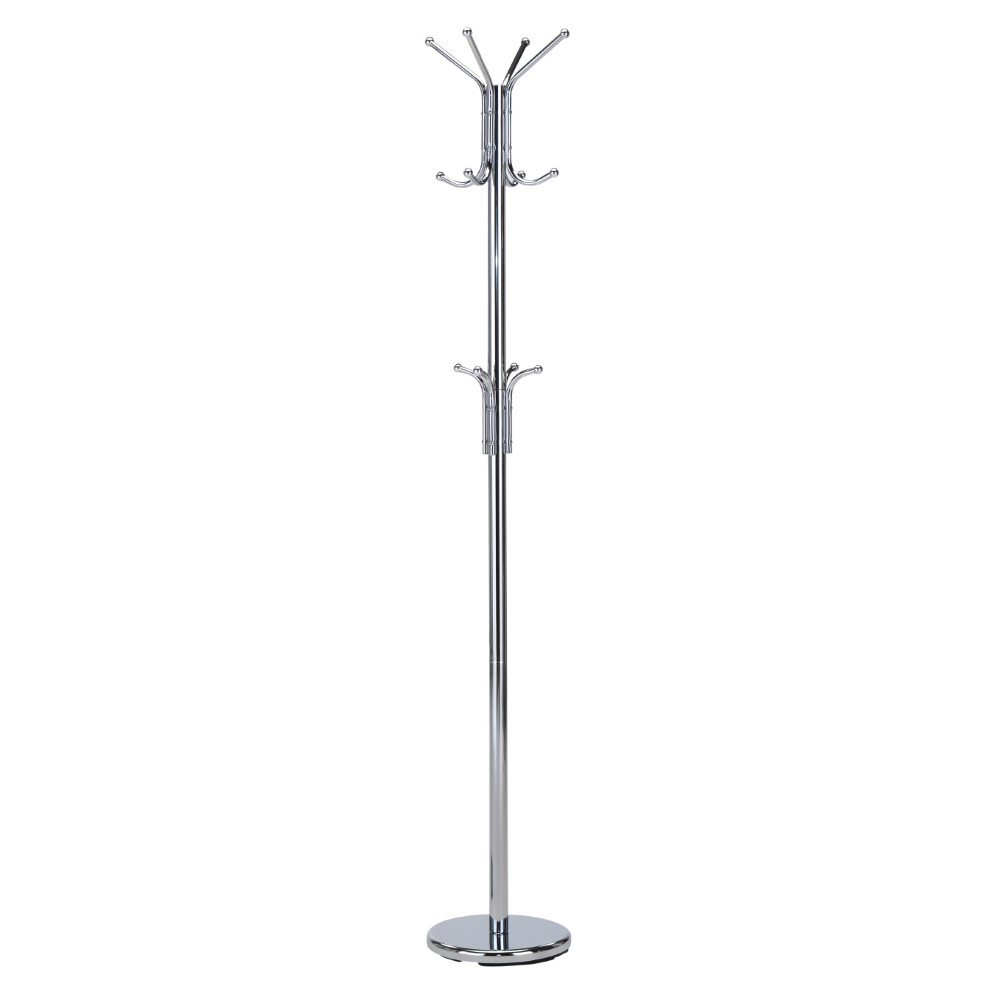 Visok obešalnik, izdelan iz jekla s krom finišem.