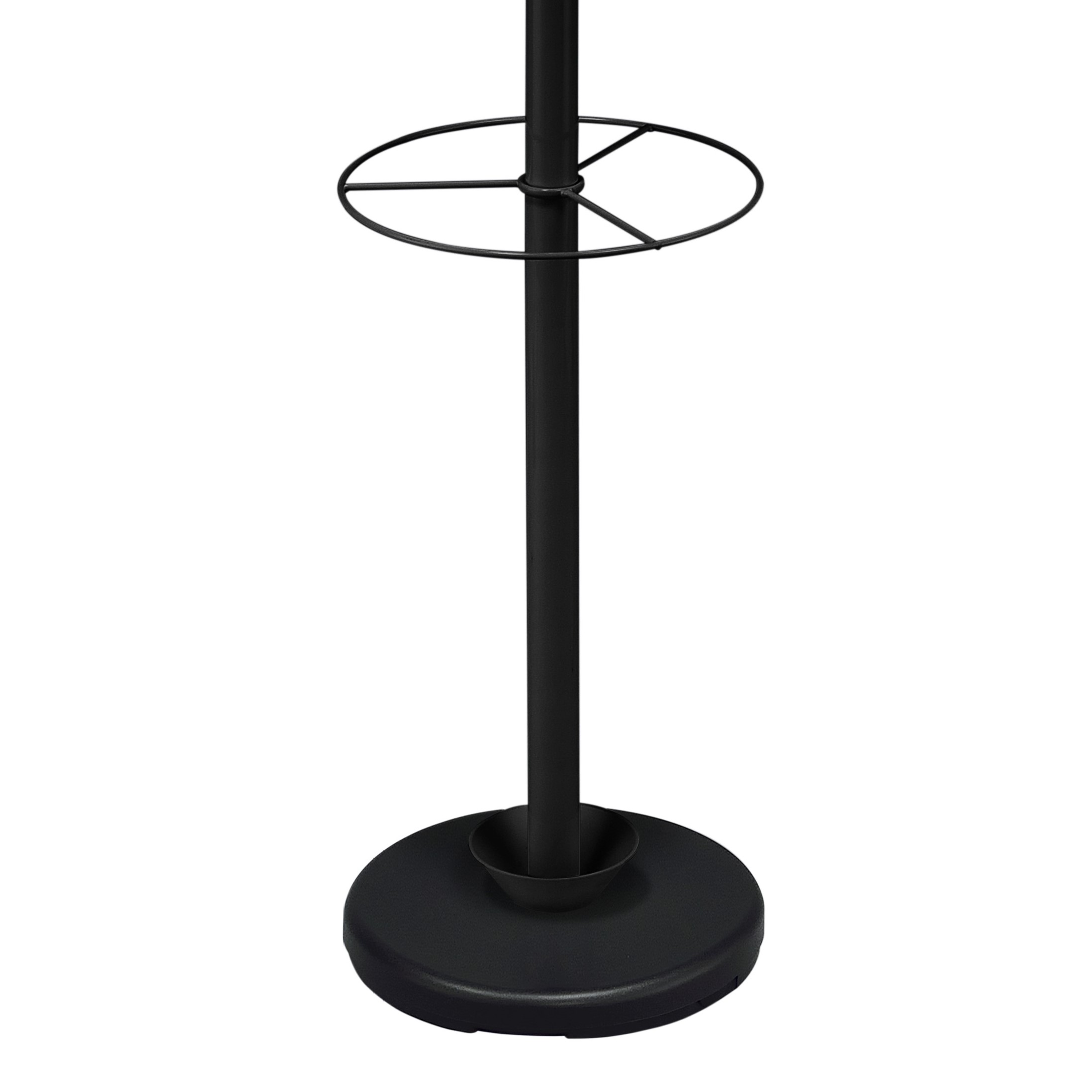 Vnesite urejenost in funkcionalnost v vaš prostor s tem praktičnim stojalom za oblačila, ki omogoča učinkovito organizacijo s preprostim dizajnom. Zaradi večnivojske razporeditve kljuk omogoča pregledno obešanje oblačil in dodatkov, hkrati pa ohranja kompakten in urejen videz prostora. Stojalo je izdelano iz jeklenih cevi in pločevine s kakovostnim prašno barvanim zaključkom v beli barvi, ki zagotavlja dobro odpornost proti obrabi in dolgo življenjsko dobo. Na voljo je tudi v črni izvedbi, kar omogoča enostavno prilagoditev različnim stilom notranje opreme. Opremljeno je s šestimi kljukami, nameščenimi na različnih višinah, kar omogoča učinkovito razporeditev oblačil, torb ali dodatkov. Kljuke imajo lesene zaključke v naravni barvi, ki ščitijo tkanine pred poškodbami ter hkrati dodajo naraven vizualni poudarek. Dodatni krožni nosilec na sredini stojala omogoča odlaganje dodatkov, kot so dežniki ali manjši predmeti, kar povečuje uporabnost izdelka. Stabilno, ojačano podnožje (heavy-duty base) zagotavlja zanesljivo oporo tudi pri večji obremenitvi. Konstrukcija je razstavljiva (K/D), kar omogoča enostavno sestavo, transport in shranjevanje. Stojalo predstavlja zanesljivo rešitev za vsakodnevno uporabo v hodnikih, pisarnah ali drugih bivalnih prostorih.