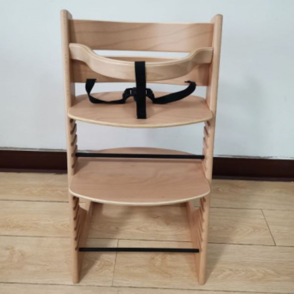Otroški stol je namenjen otrokom, ki že lahko samostojno sedijo. Narejen je v celoti iz masivnega lesa. Stolček ima zaščitno leseno letev in zaščitni pas iz tkanine. Sedišče in naslonjalo za noge sta premakljiva, kar omogoča, da se lahko stolček uporablja celotno zgodnje otroštvo. Stolček je s svojo zasnovo stabilen in enostaven za vzdrževanje. Maksimalna nosilnost: 30 kg. Okvirna višina sedišča je 54 cm.
