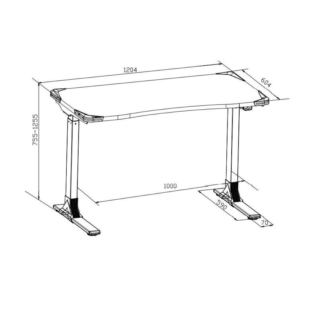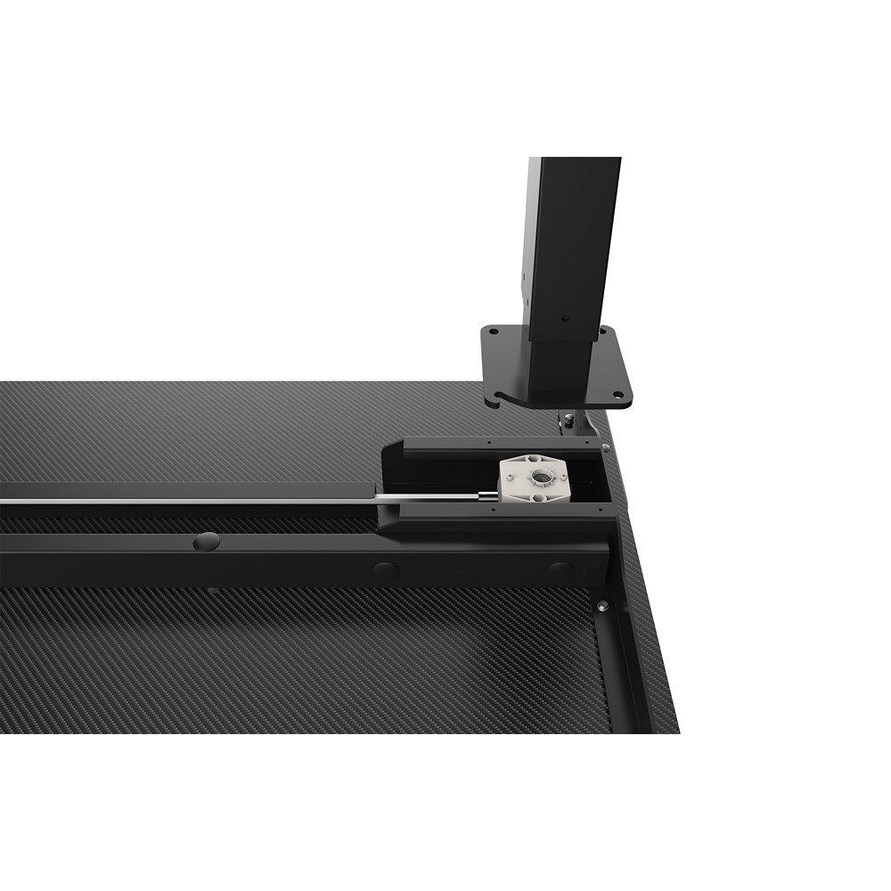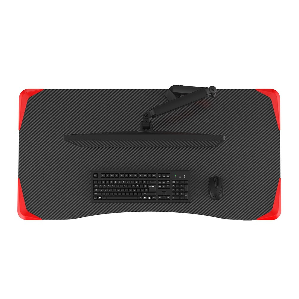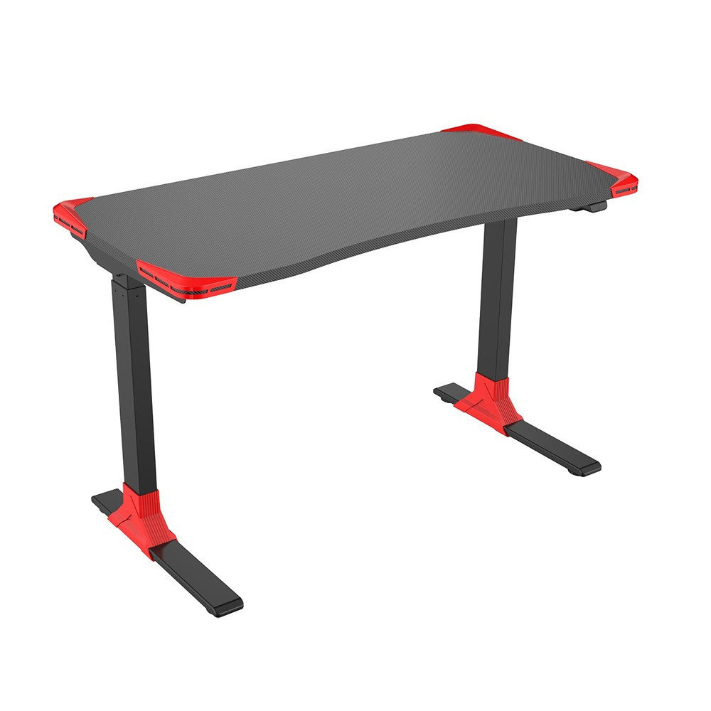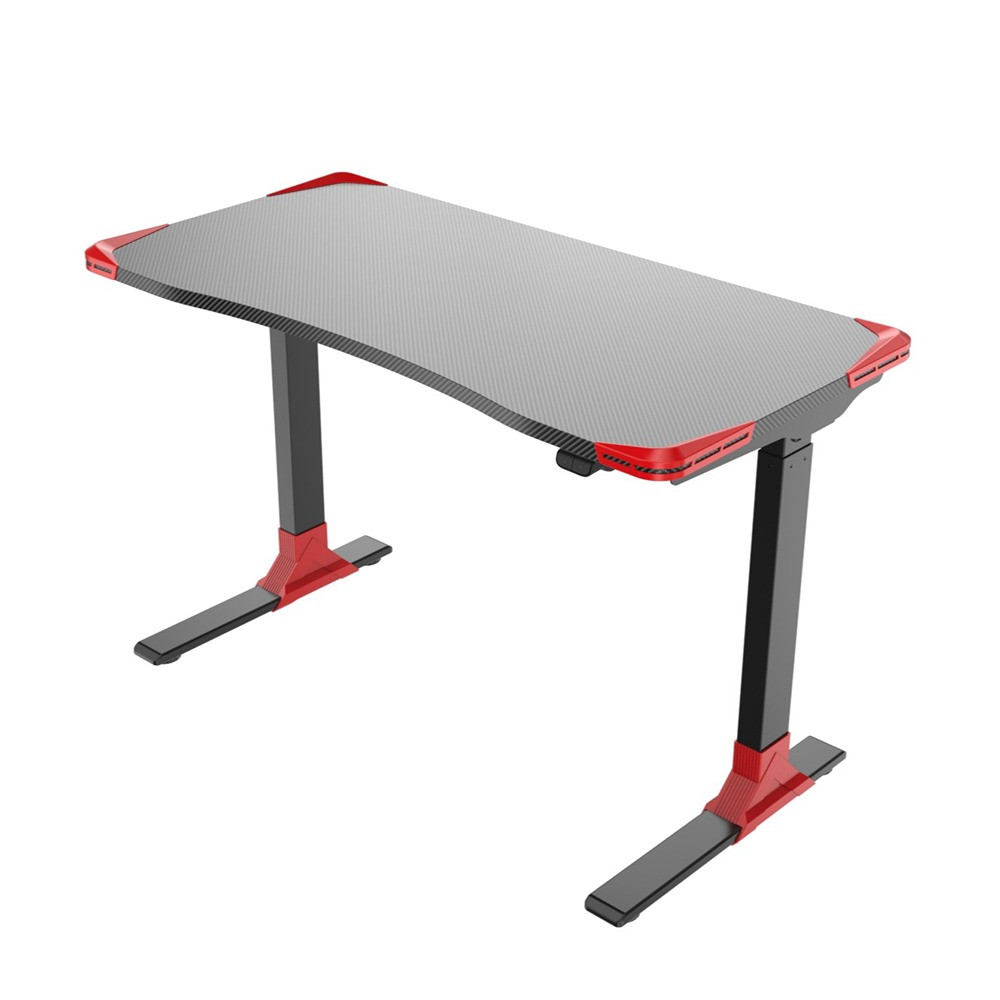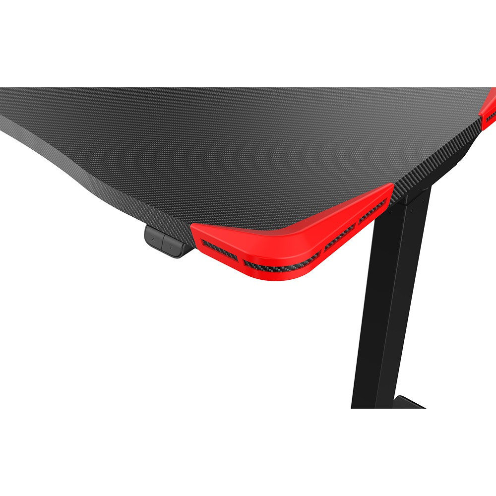Futuristična pisalna miza v agresivni kombinaciji črne in rdeče barve z avtomatsko nastavljivo višino. Miza ima vgrajen električni motor, ki omogoča spreminjanje višine plošče samo s pritiskom na gumb. Premični mehanizem ima razpon 50 cm, kar omogoča, da se lahko miza iz najnižjega položaja pri 75,5 cm dvigne na najvišji položaj na višini 125,5 cm in katerokoli višino med njima. Hitrost dviganja neobremenjene mize je 25 milimetrov na sekundo. Za delovanje je potrebna napetost od 100 do 240V. Plošča mize ima imitacijo teksture ogljikovih vlaken črne barve. Noge so 2-stopenjske in ojačane. Maksimalna obremenitev mize je 50 kilogramov.