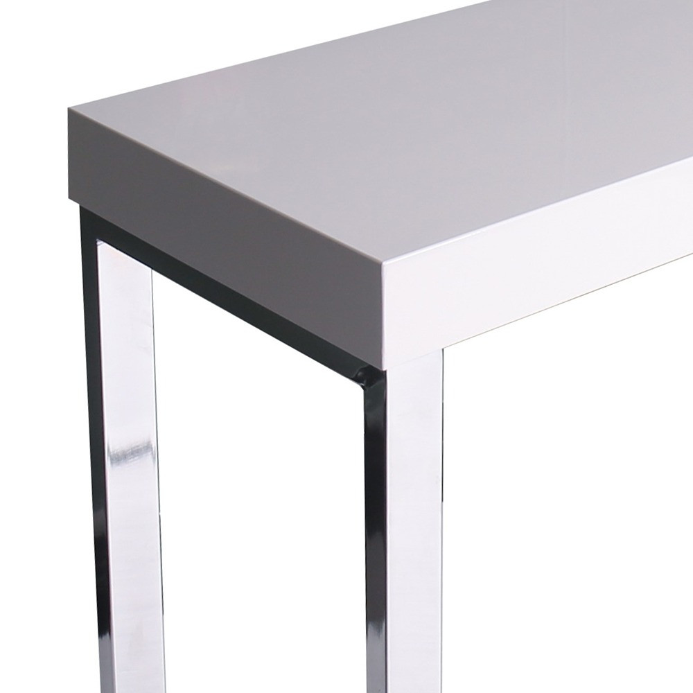 Preprosta pisarniška miza v kombinaciji črnega kovinskega okvirja in MDF plošče, oplaščene v hrastov lakiran melamin ali mizne plošče, narejene iz MDFa, oplaščenega v bel lakiran melanim s kromiranim jeklenim okvirjem. Debelina zgornje plošče je 80mm. Maksimalna obremenitev plošče: 80 kg.