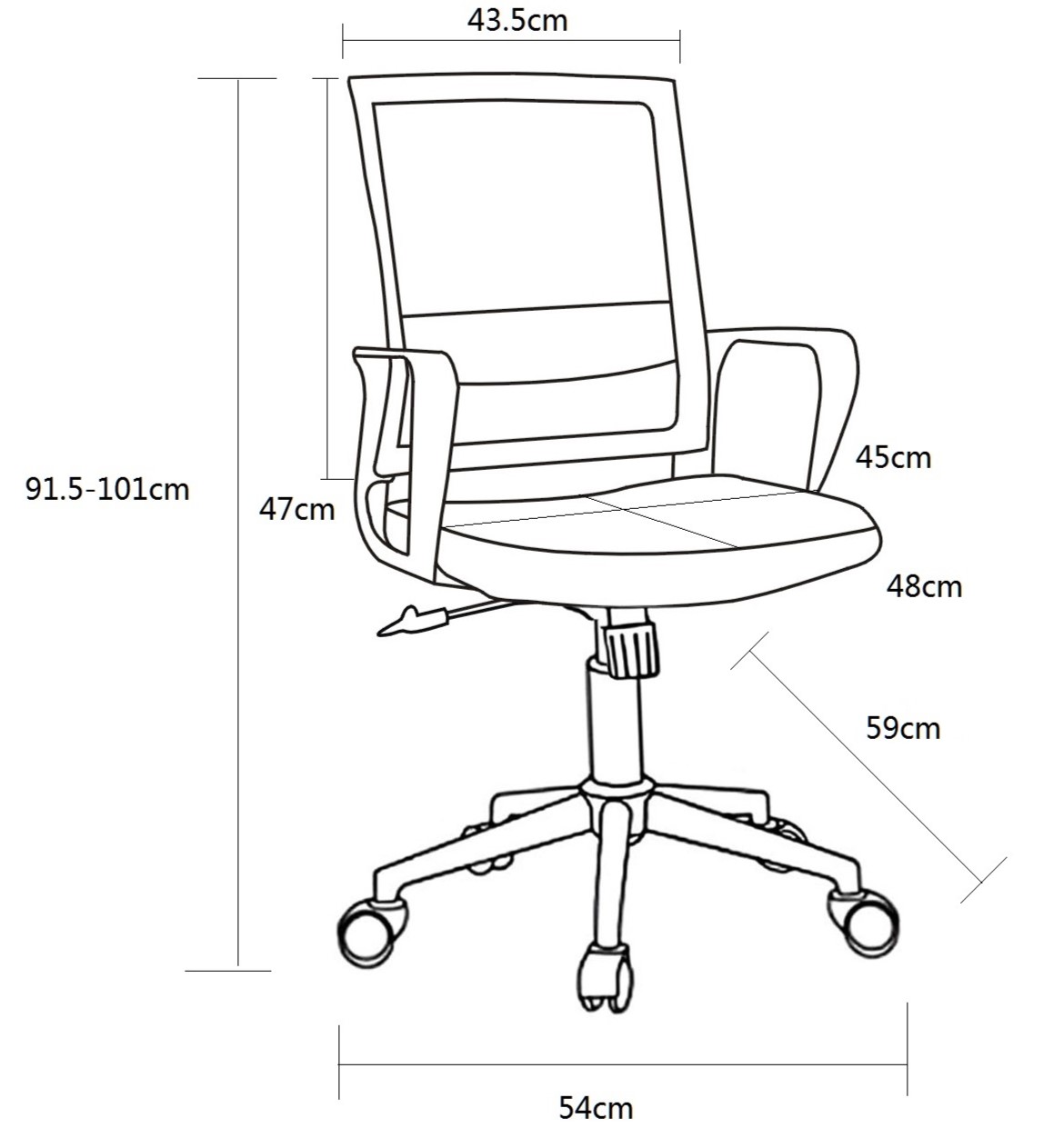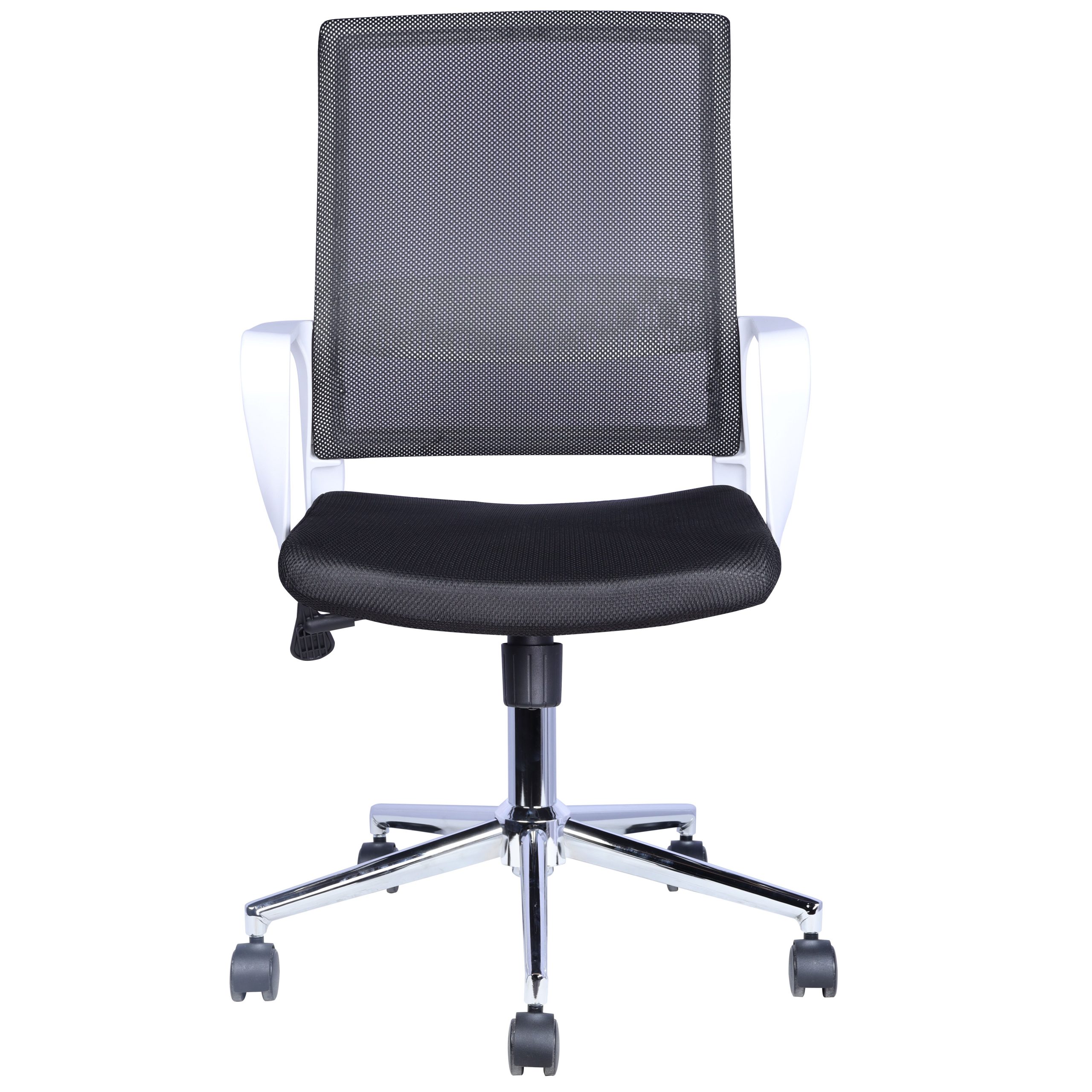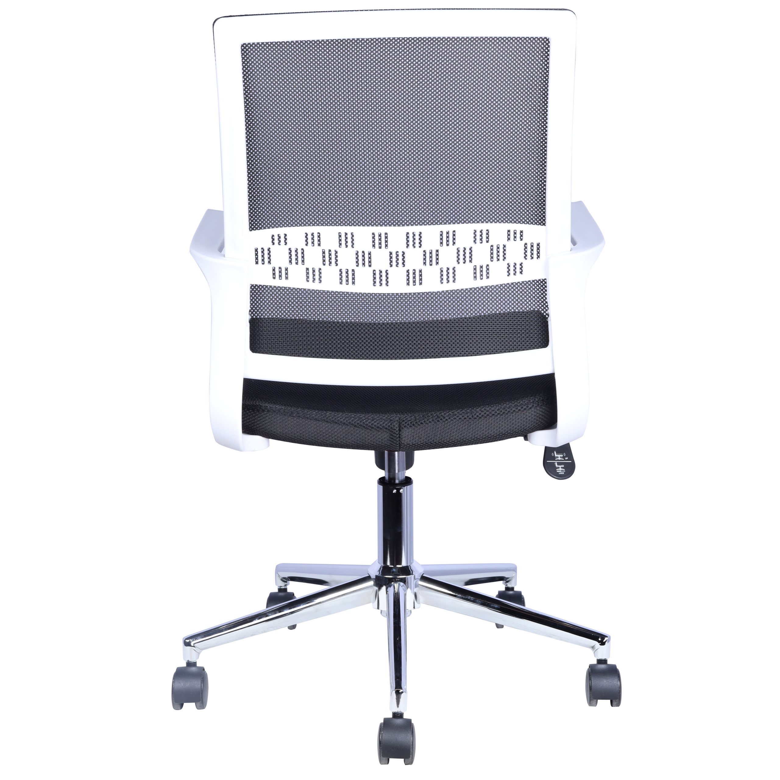 Pisarniški stol, z belim okvirom in oblazinjenjem v več barvah. Stol je vrtljiv in nastavljiv po višini. Po hrbtišču in sedišču je oblazinjen z mrežasto tkanino ki omogoča pretok zraka. Rokonasloni so fiksni in integrirani s hrbtiščem. Podnožje je kromirano in je opremljeno s petimi gumiranimi kolesci črne barve. Maksimalna nosilnost stola je 90 kg.