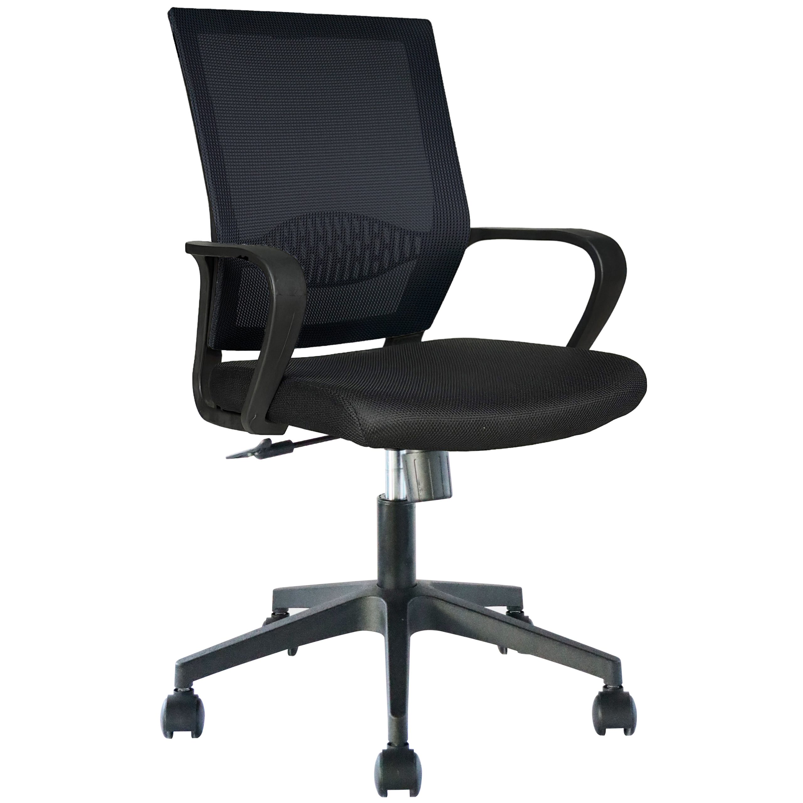 Praktičen pisarniški stol, na voljo v povsem črni barvi ter z ergonomsko oblikovanim hrbtiščem. Stol je 360° vrtljiv in nastavljiv po višini s plinskim mehanizmom v nosilnem stebričku. Oblazinjen je z mrežasto tkanino ki omogoča pretok svežega zraka. Rokonasloni so fiksni. Podnožje stola je izdelano iz trpežnega najlona.