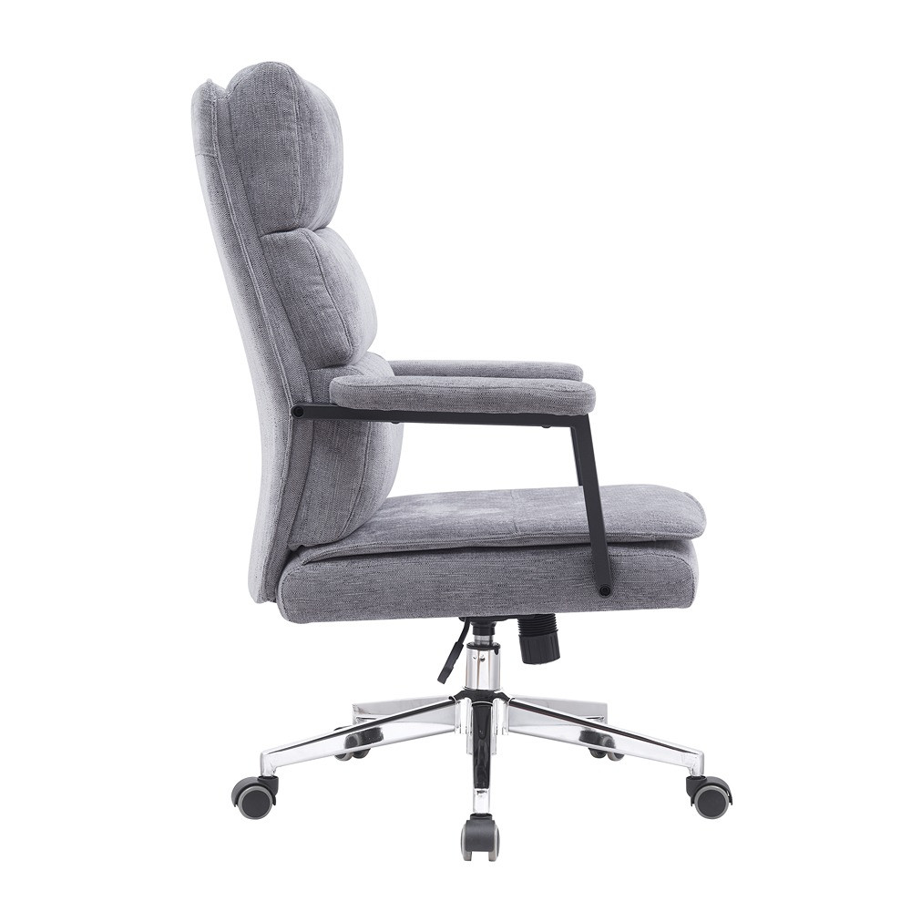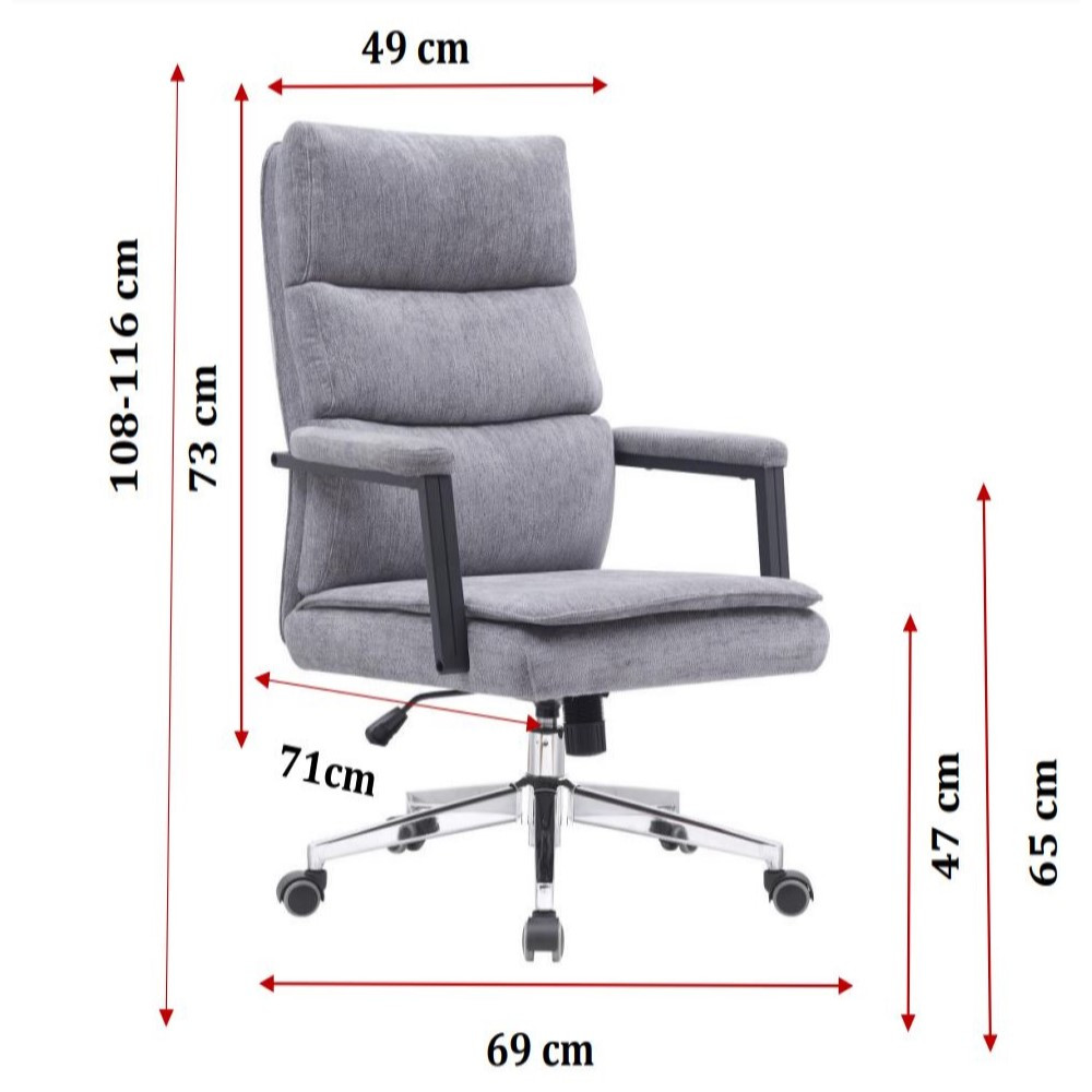 Pisarniški stol, zasnovan za udobje in funkcionalnost, zaradi česar bo odličen dodatek k vsakemu delovnemu prostoru. Oblazinjen je s kakovostnim blagom in na voljo v več barvnih različicah. Stol ima mehko oblazinjen naslon za hrbet, ki zagotavlja odlično oporo zgornjemu delu telesa in spodbuja zdravo držo skozi dan. Ena od glavnih funkcij stola je njegova 360° vrtljivost, kar vam daje prilagodljivost za prosto gibanje. Višino stola je mogoče enostavno nastaviti s pomočjo plinskega mehanizma, ki je vgrajen v podporni steber in zagotavlja, da lahko najdete optimalen položaj sedenja, ki ustreza višini vaše mize. Stol je opremljen tudi z metuljček mehanizmom, ki vam omogoča nastavitev kota sedišča. Ta funkcija je še posebej koristna za izboljšanje ergonomije, saj zagotavlja dodatno podporo za spodnji del hrbta in pomaga zmanjšati obremenitev med dolgimi urami sedenja. Naslonjala za roke stola so fiksna ter na vrhu oblazinjena, da nudijo udobno počivališče za vaše roke in zmanjšujejo obremenitev vaših ramen. Podnožje stola je izdelano iz kovine z elegantnim kromiranim finišem. Črna poliuretanska kolesa gladko drsijo po različnih talnih površinah in zagotavljajo enostavno mobilnost ter hkrati ščitijo vaša tla pred praskami. Z največjo nosilnostjo 120 kg lahko ta pisarniški stol sprejme širok spekter uporabnikov. Ne glede na to, ali delate na pomembnih projektih, se udeležujete virtualnih sestankov ali preprosto vzamete odmor, je ta stol pripravljen, da vas podpira ves dan, saj združuje udobje, slog in praktičnost v enem elegantnem dizajnu.