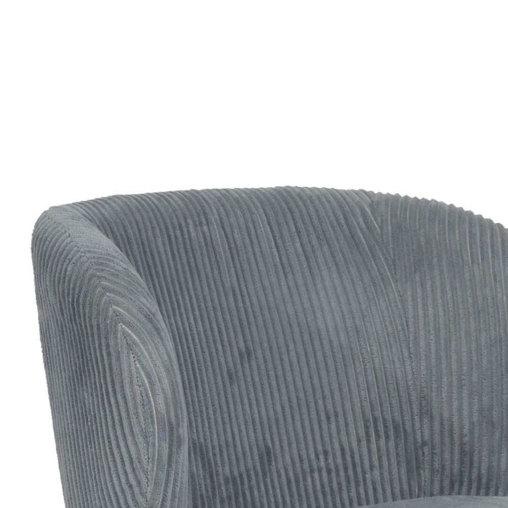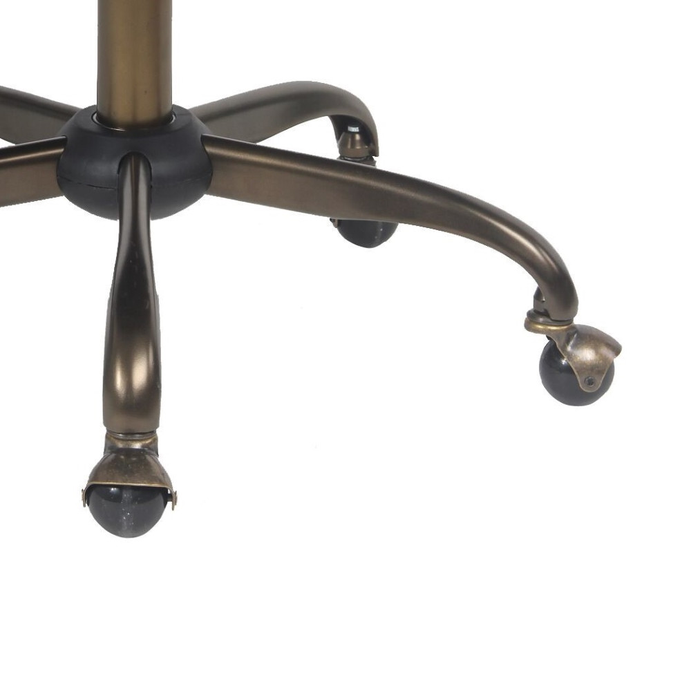 Trendovski pisarniški stol oblazinjen s sivo žametno tkanino. Je vrtljiv in nastavljiv po višini. Kovinsko podnožje in kolesca imajo izgled starinske medenine. Maksimalna nosilnost: 130 kg. Višina sedišča je 45-54 cm.