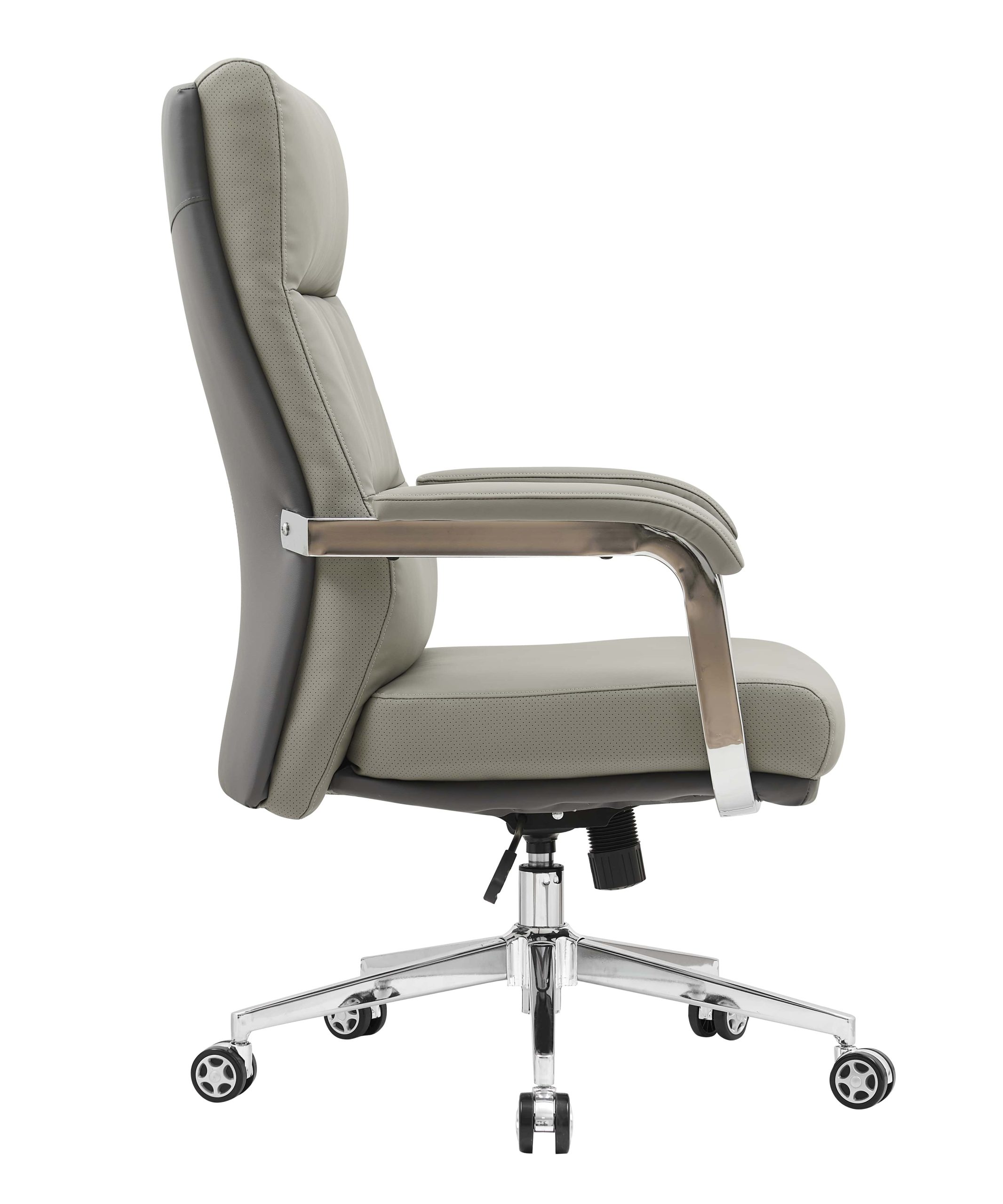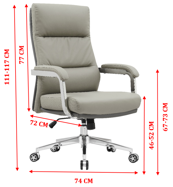 Pisarniški stol ima oblazinjene rokonaslone ter je vrtljiv in nastavljiv po višini. Poleg tega je opremljen z metuljček mehanizmom za nagibno funkcijo ki uporabnikom omogoča prilagajanje naslona za prilagojeno podporo skozi delovni dan. Njegovo kromirano podnožje zagotavlja tako stabilnost kot privlačen slog.