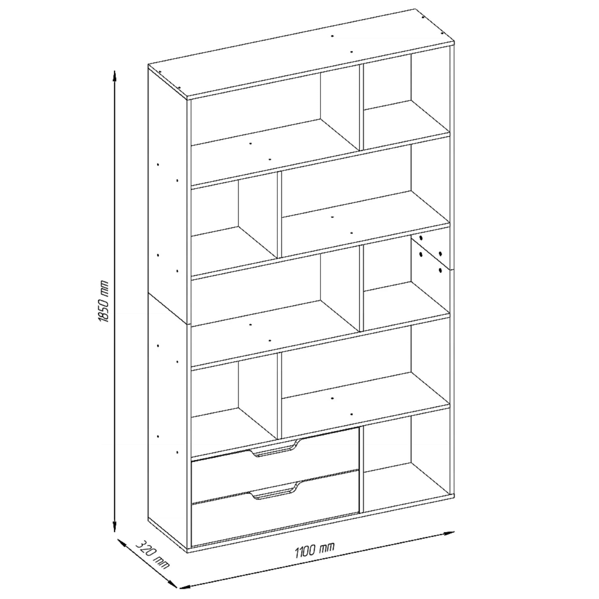 Ta visok poličnik je vsestranska in prostorsko učinkovita rešitev za shranjevanje in razstavo v manjših bivalnih prostorih. S svojo enostavno strukturo in dvobarvno barvno paleto doda notranjosti sodoben občutek, hkrati pa ponuja možnosti za vsakodnevno organizacijo. Finiš v barvi sonoma hrasta z mat belimi sprednjimi stranicami predalov se zlahka ujema z vrsto dekorjev – od minimalističnih in skandinavskih do bolj klasičnih notranjih dekorjev. Zgornji del omare ima niz polic, vsaka z eno nastavljivo pregrado, ki ustvari daljši in krajši predel znotraj vsakega prostora. Zaradi te prilagodljivosti je poličnik zelo primeren za organiziranje knjig, foto okvirjev, spominkov ali drugih okrasnih predmetov. Vsaka posamezna polica lahko zdrži do 3 kg, kar zagotavlja zadostno podporo za večino gospodinjskih predmetov. Na dnu enote sta dva prostorna predala, ki gladko drsita po trpežnih kovinskih vodilih. Ti predali so idealni za shranjevanje predmetov, kot so papirji, elektronika ali drugigospodinjski pripomočki. Z nosilnostjo do 5 kg na predal nudijo shranjevanje za stvari ki jih ne želite imeti razstavljene na vidnem mestu. Celoten poličnik je izdelan iz visokokakovostnega iverala, oblečenega v melamin za dolgotrajno vzdržljivost. Melaminska prevleka izboljša njegovo odpornost proti obrabi, vlagi in vsakodnevni uporabi. Za še dodatno odpornost in lažje vzdrževanje so  robovi zaključeni z zaščitno PVC prevleko, ki ščiti ploščo pred vplivi okolja. Preprost, toda  funkcionalen, ta poličnik je tako odličen dodatek k kompaktnim stanovanjem, spalnicam ali domačim pisarnam, kjer je vertikalno shranjevanje zaželeno. Ne glede na to, ali se uporablja kot odpra vitrina ali za praktično organizacijo, zagotavlja učinkovito mešanico estetike in uporabnosti.