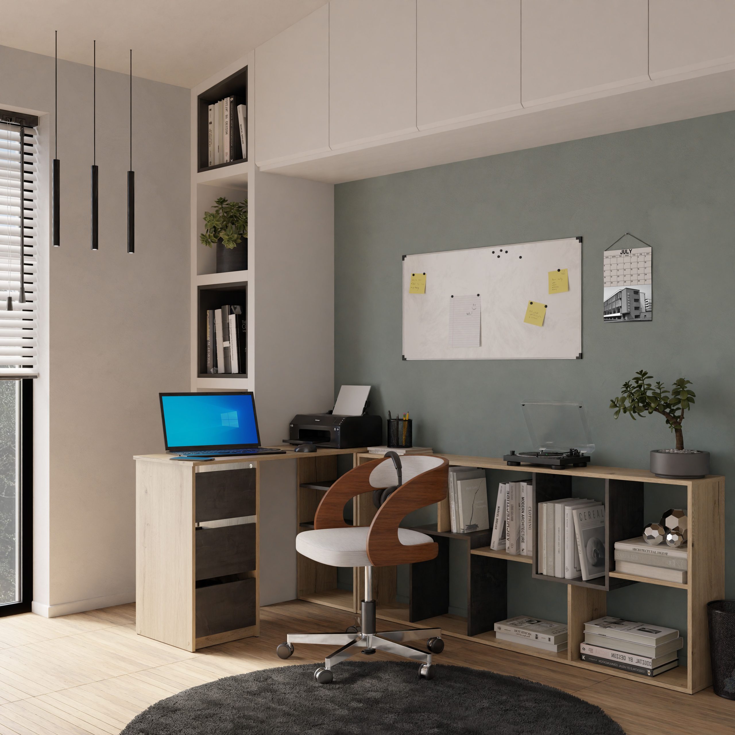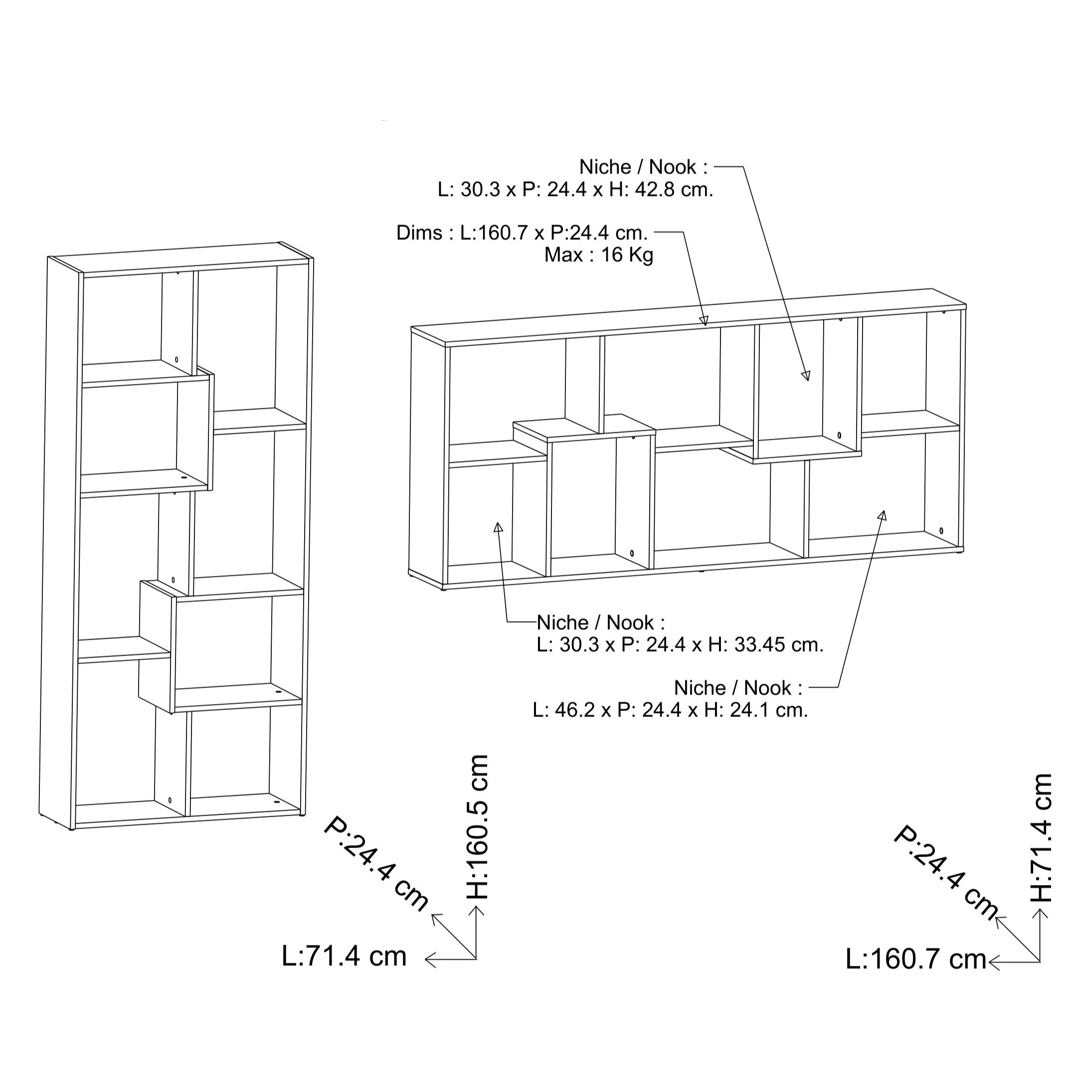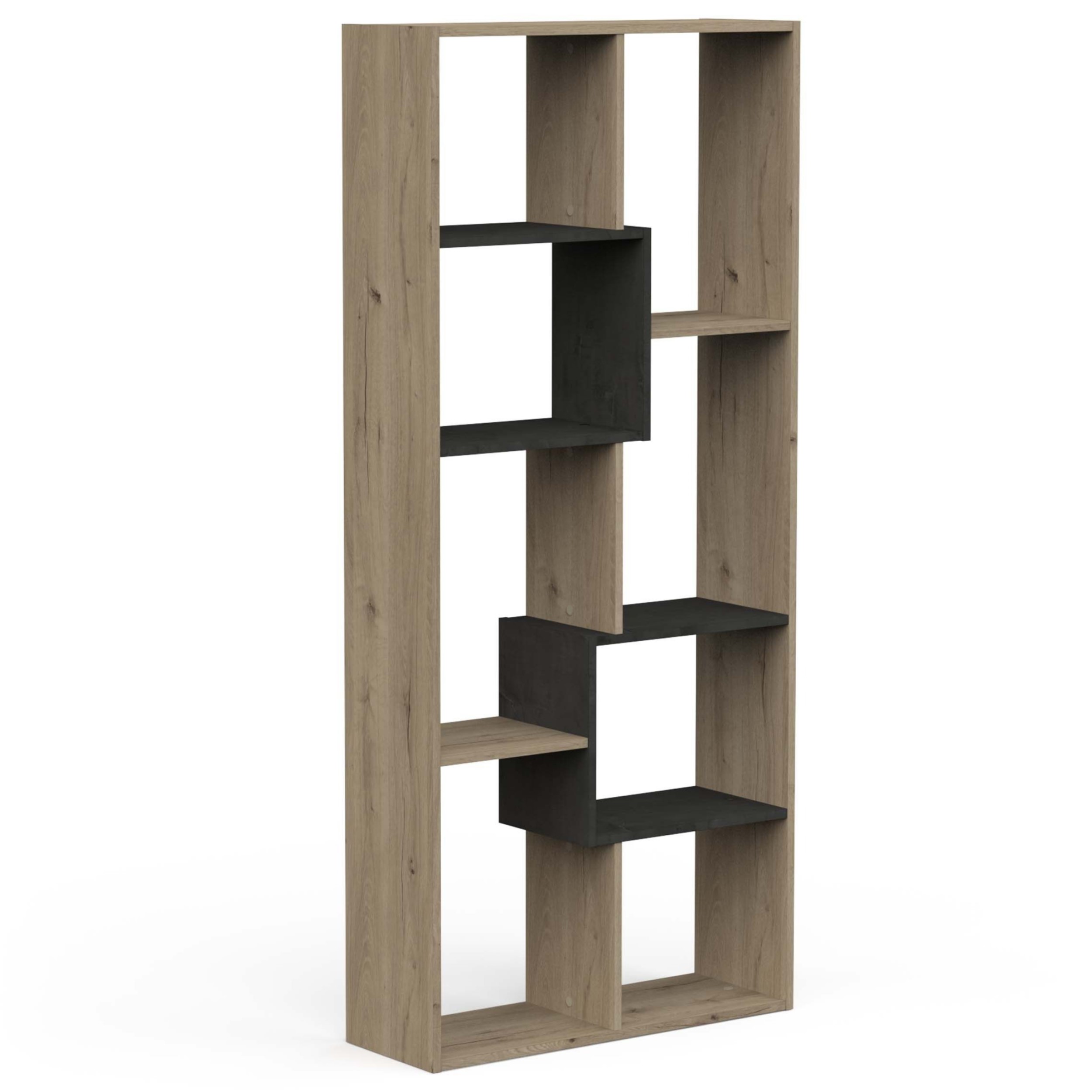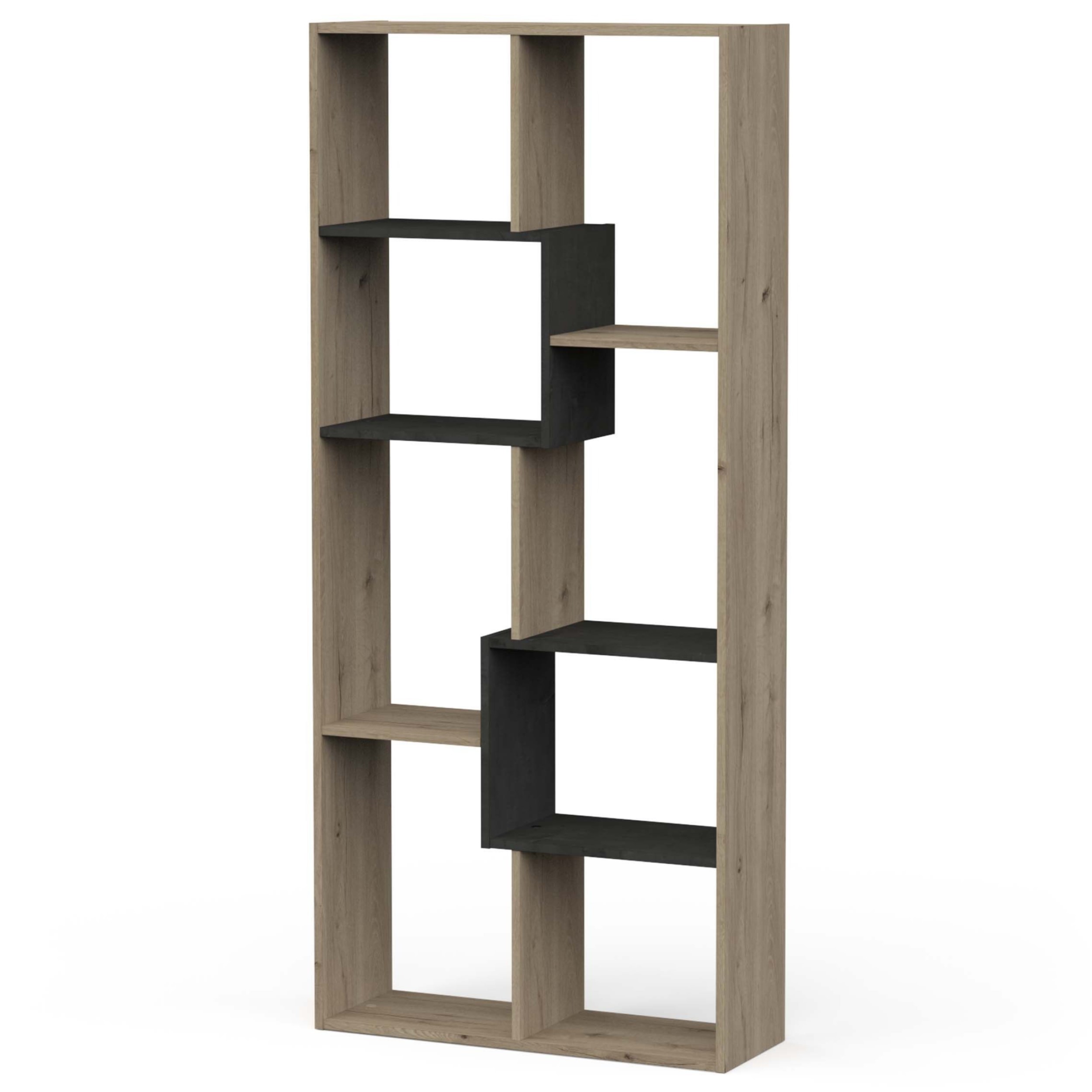 Velik in funkcionalen poličnik v barvi hrasta ter v celoti izdelan v Franciji. Poličnik je zasnovan tako da lahko stoji na vseh stranicah. To omogoča da se lahko postavi kot dolg, nizek poličnik, ali pa kot visoka omarica ki ne zavzame veliko talnega prostora. Ima osem odprtih prostorov za odlaganje stvari ter je v celoti narejen iz kakovostnih iveralnih plošč, oblečenih v melanin.