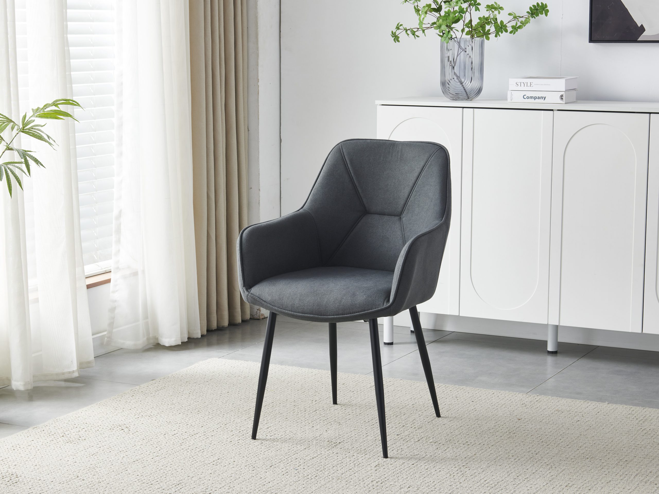 Oblazinjen jedilniški stol, zasnovan za popestritev vašega jedilnega prostora s stilom in udobjem. Na voljo je v treh barvnih različicah – svetlo sivi, temno sivi ter ​​rjavi – kar vam omogoča, da izberete popoln ton, ki dopolnjuje vaš notranji dekor. Dizajn vključuje integrirane naslone za roke, ki zagotavljajo dobro podporo in sprostitev ob dolgotrajnem sedenju. Sedež, nameščen na višini 47 cm, ima izdatno količino debele podloge, ki zagotavlja, da lahko vi in ​​vaši gostje uživate v udobnem sedenju med obroki. Dimenzije sedeža so globina 45 cm in širina 43 cm, kar ponuja dovolj prostora za večino uporabnikov. Notranja stran naslona za hrbet je okrašena z okrasnimi šivi za bolj prefinjen videz. Ti okrasni poudarki popestrijo videz oblazinjenja ter tako tudi povečajo estetsko privlačnost stola. Podnožje stola je izdelano iz kovinskih cevi, prašno lakiranih v črni barvi, ki zagotavljajo eleganten, moderen zaključek, hkrati pa nudijo zaščito pred vsakodnevno obrabo in okoljskimi dejavniki. Ta robustna konstrukcija zagotavlja dolgotrajno vzdržljivost, jedilni stol pa se ponaša z največjo nosilnostjo 120 kg, zaradi česar je primeren za širok krog uporabnikov. Ta komplet oblazinjenih jedilnih stolov združuje udobje, vzdržljivost in slog v enem izjemnem paketu, ne glede na to, ali opremljate formalno jedilnico ali vsakdanji zajtrkovalni kotiček.