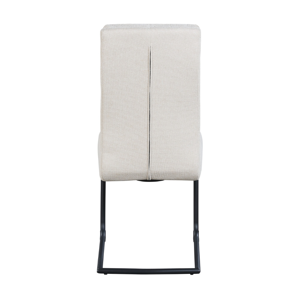 Jedilniški stol, opremljen z vzmetenjem in oblazinjen s tkanino, na voljo v več barvah. Po naslonjalu ima dve plasti oblazinjenja, z zunanjo plastjo prešito z okrasnimi šivi za lepši izgled. Sedišče stola je široko 42 cm, globoko 41 cm in je opremljeno z bonell vzmetmi za bolj udobno sedenje. Naslon za hrbet je visok 52 cm in širok 38 cm. Podnožje stola, v obliki sani, je narejeno iz kovinskih cevi, prašno lakiranih za boljšo zaščito. Maksimalna nosilnost stola je 120 kg.