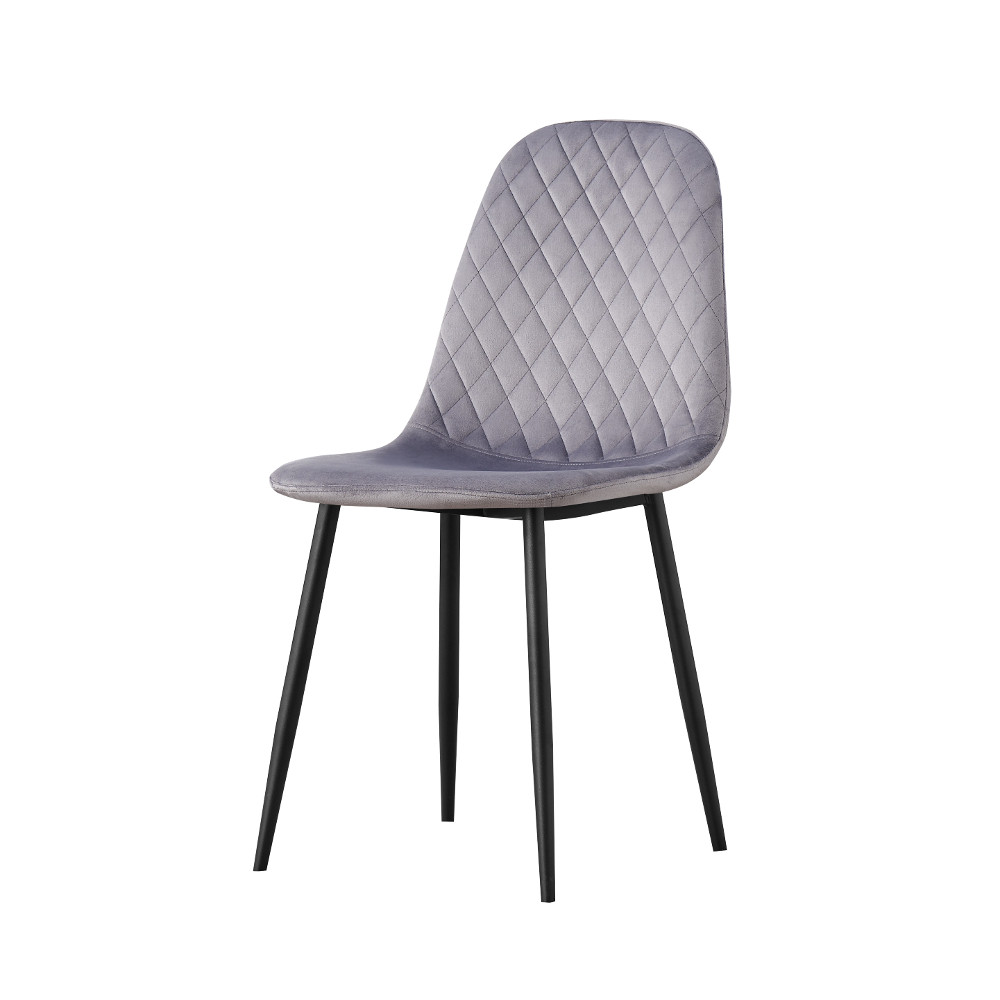 Preprost jedilniški stol, na voljo v več barvah. Stol je oblazinjen s kvalitetno tkanino in je po naslonu za hrbet prešit z okrasnimi šivi v obliki rombov. Naslon je 43 cm visok. Sedišče je široko 44 cm, globoko 39 cm in 4 cm debelo. Podnožje stola je narejeno iz kovine in prašno lakirano v črno barvo za boljšo zaščito. Največja možna obremenitev stola je 120 kg.