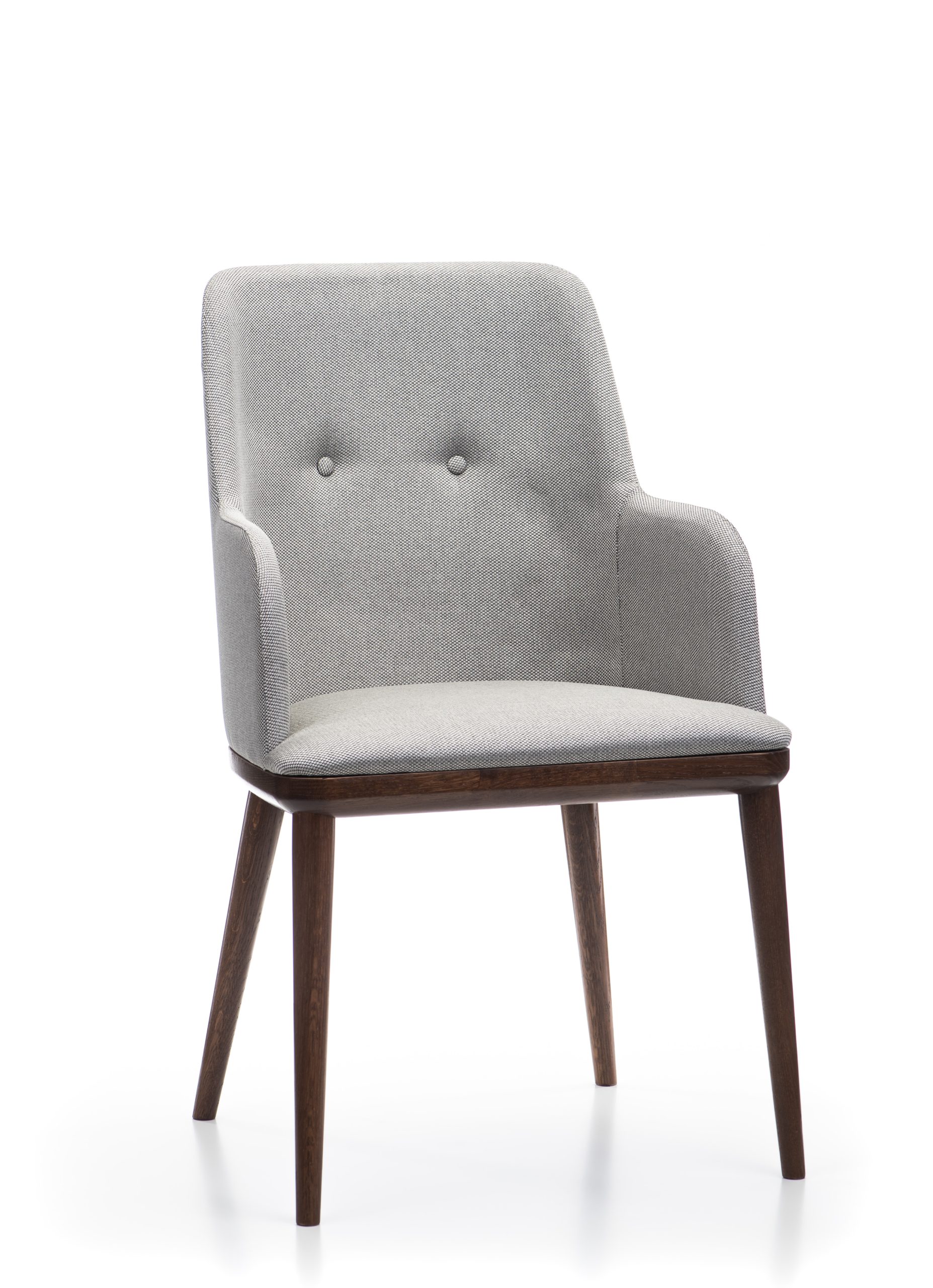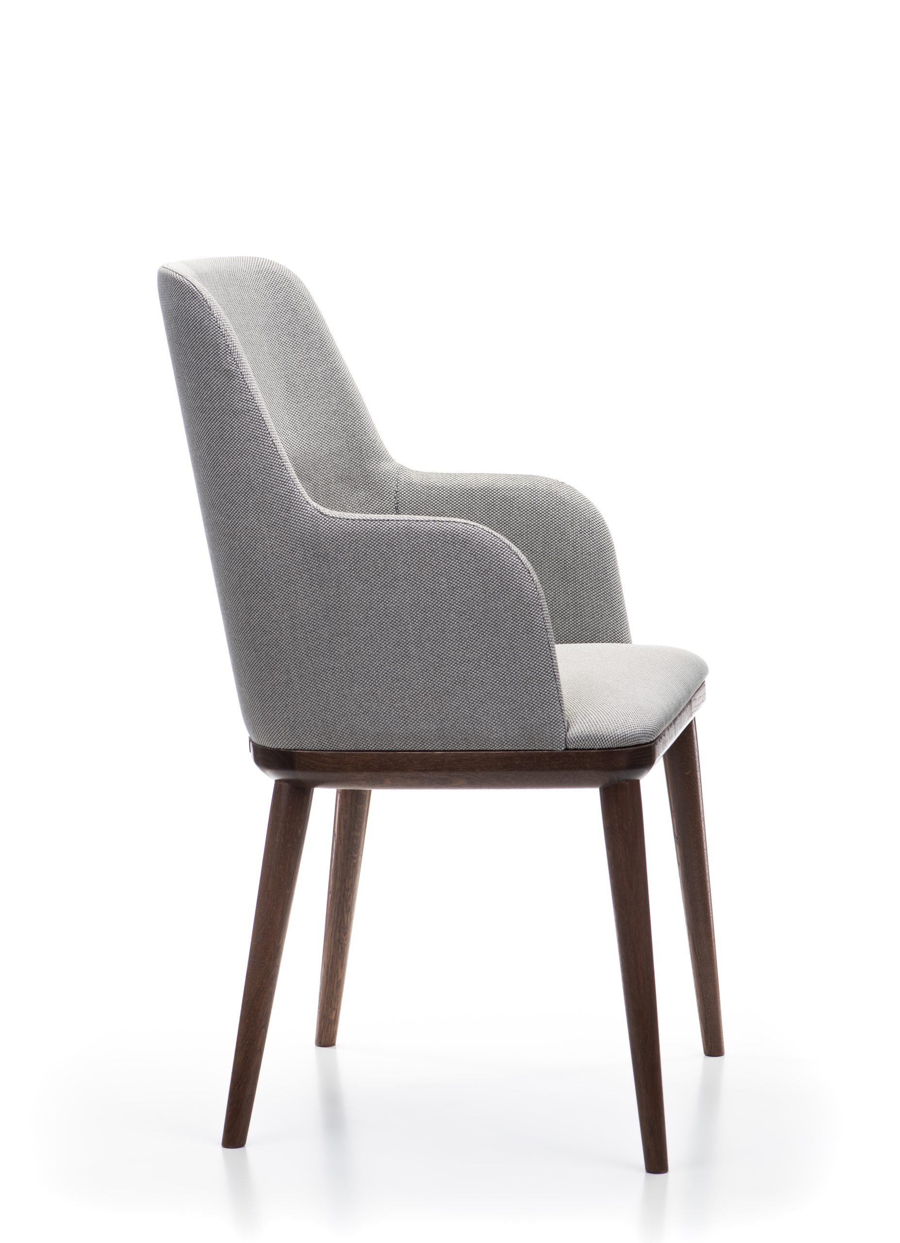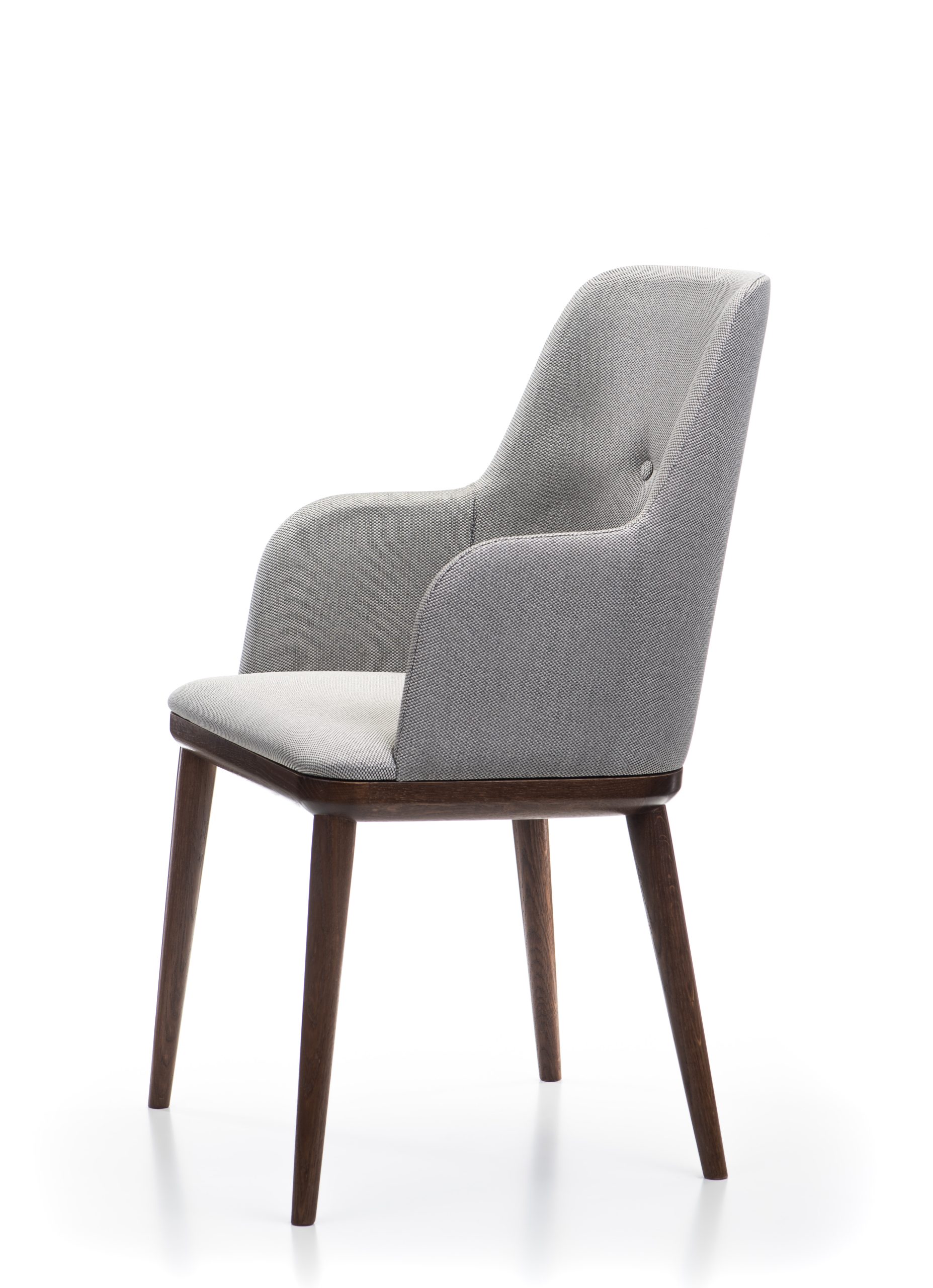 Zaradi premišljene oblike in ergonomije stol nudi prijetno sedenje tudi ob daljši uporabi, obenem pa ohranja elegantne linije, ki se lepo vključijo v različne notranje sloge. Oblazinjen hrbtni del omogoča večjo prilagodljivost pri izbiri materialov in barv ter poudari prefinjen značaj stola.