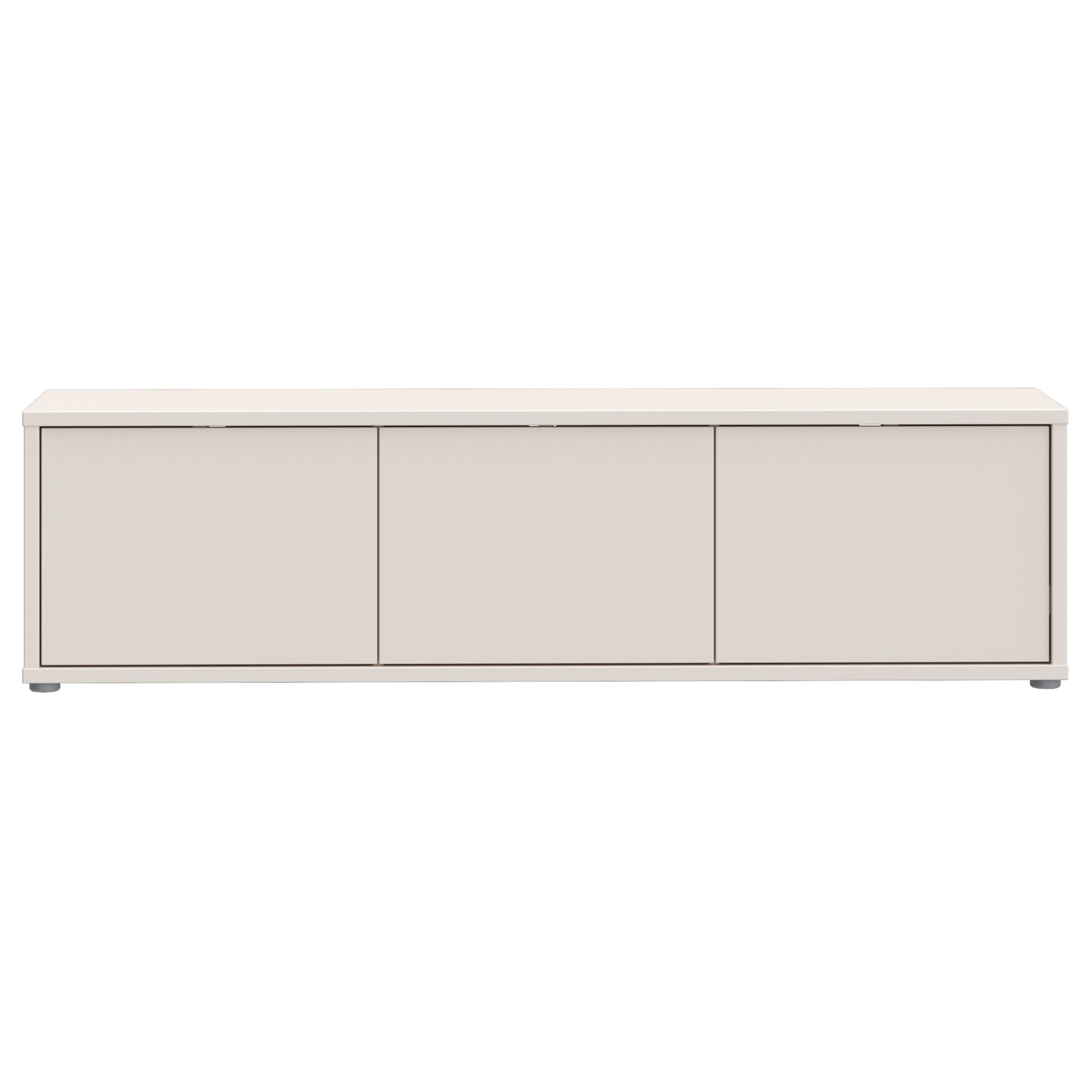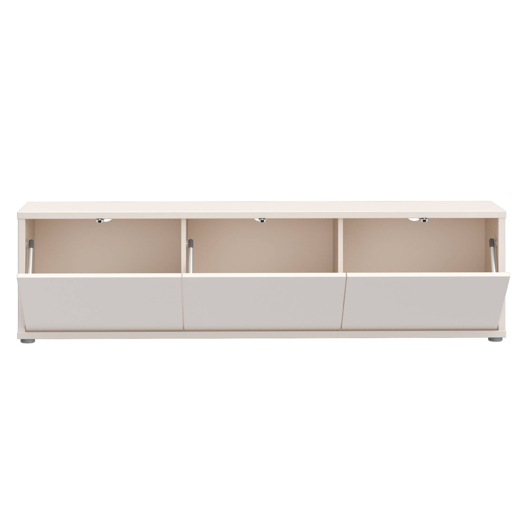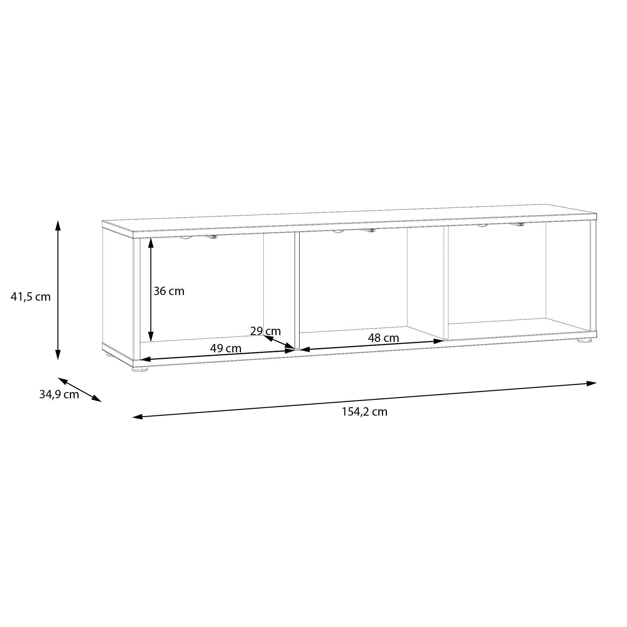 Široka TV komoda, narejena iz kakovostnega iverala, na voljo v terakota barvi rdečkastega odtenka ali v barvi peska. Notranjost komode je razdeljena na tri enake prostore s fiksnimi pregradami.