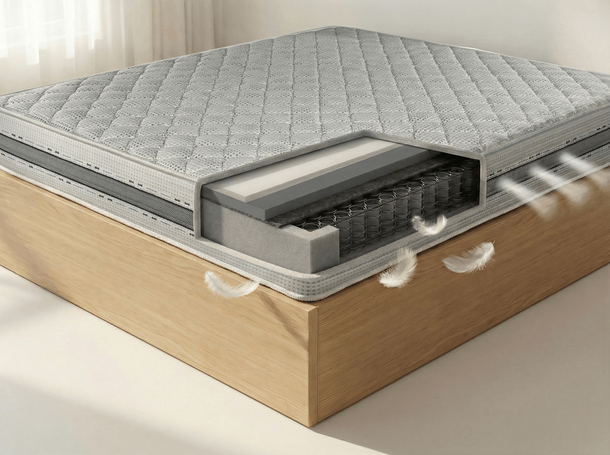 Neprimerljiva zračnost: Zaradi praznega prostora znotraj mrežne strukture vzmeti zrak v notranjosti nenehno kroži. Takšna visoka stopnja prezračevanja preprečuje zadrževanje vlage in pregrevanje telesa, kar ustvarja svežo in suho spalno klimo.